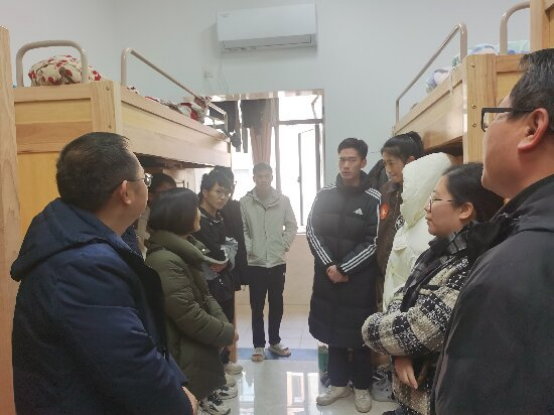 临近考研,12月18日下午,基础医学院院长许晓源、院党委副书记刘频健前往学生寝室看望慰问正在学校备战考研的学生,学生科科长陈文雯、学生思政科副科长樊云燕及A2011班班主任范文燕陪同前往慰问。