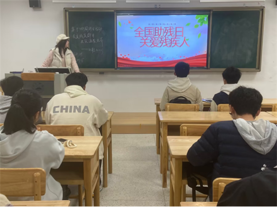 在教学楼(一)B502,基础2422班团支书通过PPT讲解和事例分享的形式,和同学们一起深入探讨了残疾人面临的挑战和权益保护的重要性。朱佳欣同学表示:“在此次团日活动中,我不仅提高了对残疾人的了解和尊重,也学会了如何用实际行动去关爱和帮助他们。我相信,通过每个人的努力,我们的社会将变得更加和谐与包容。”
