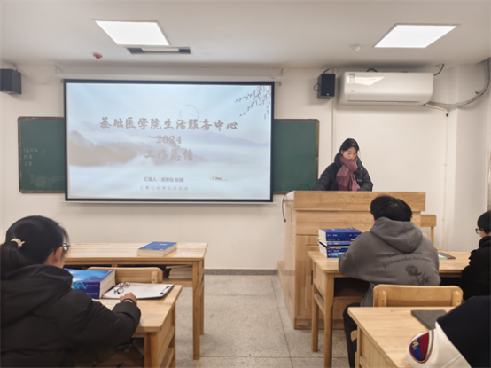 2025年3月5日晚,基础医学院在研究生楼121教室召开了2024年度团委和学生会学生干部述职大会。基础医学院党委副书记刘频健、学生思政科副科长樊云燕出席本次会议,会议由学生会主席团成员王朝阳主持。