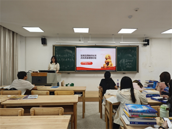 在教学楼B502,基础A2422班团支书蔡若梅同样采用 PPT 的形式为大家进行了细致讲解。本次讲解以沉浸式知识学习为核心,通过组织同学们观看《觉醒年代》中与五四相关的经典片段,生动重现了那段波澜壮阔的历史画卷,让同学们深刻感受到了先辈们滚烫的爱国热忱与不屈的奋斗精神。在交流环节,同学们积极分享各自的青春理想,并结合自身专业深入探讨如何将个人成长融入国家发展的宏伟蓝图之中,现场氛围热烈且富有成效。