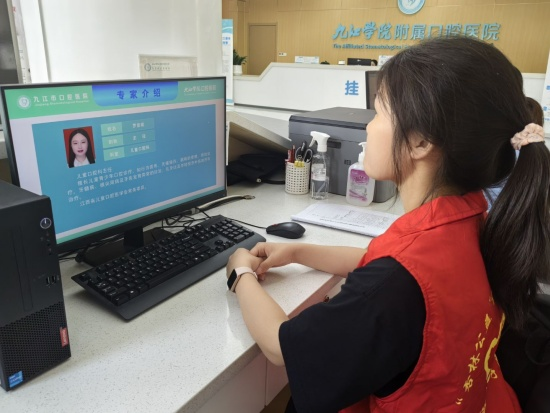 在休息日的上午8点至12点、下午14点至15点半,志愿者们分批次前往濂溪区口腔医院。在医院工作人员的引导下,他们迅速熟悉了环境与工作流程,分驻至四个楼层开展志愿服务。一楼的志愿者为患者指引科室方向,四楼的志愿者协助护士完成挂号等工作,并主动搀扶行动不便者,保障其安全就诊。