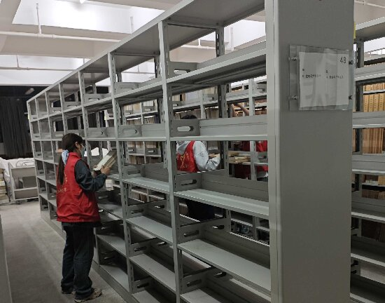 活动当日,志愿者们身着红色志愿服,准时抵达图书馆。在工作人员的指引下,志愿者们迅速而有序地进行了分工。两名同学负责大厅的卫生清洁工作,其余志愿者则前往积尘较为严重的校史资料区。整理过程中,志愿者们默契配合,形成了一条高效的“作业流水线”。前排同学从书架上取下书籍,中间的同学负责接力传递,后排的同学则仔细对书籍进行分类并将其整齐上架。在团队的紧密协作下,原本杂乱且布满灰尘的书架逐渐变得整齐有序,一本本书籍又重新焕发出知识的光彩。