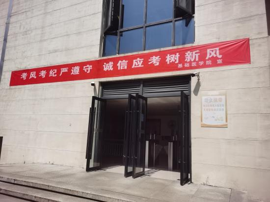 为强化学生诚信应考意识,营造公平公正的考试环境,基础医学院在学生宿舍和教室显著位置张贴诚信应考的宣传条幅,并于2025年6月11日,组织各班召开了"严肃考风考纪,共筑诚信考场"教育班会。