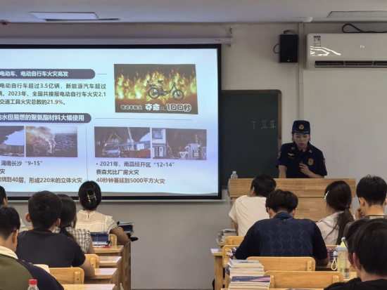 为深入学习贯彻习近平总书记关于学校安全工作的重要指示批示精神,切实提升学生消防安全意识与火灾应急逃生技能,基础医学院特邀濂溪区消防救援大队于9月2日下午在研究生楼121教室开展消防安全知识理论授课,在校的90余名学生干部参与了此次理论学习。