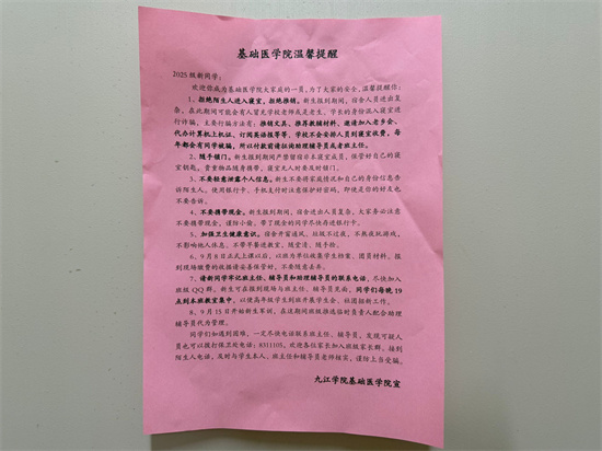 为切实增强2025级新生及家长的反诈防骗意识,九江学院基础医学院将反诈防骗教育前置,于迎新期间开展系列宣传教育活动,实现从家门到校门,从寝室到教室、从学生到家长的提醒全覆盖。