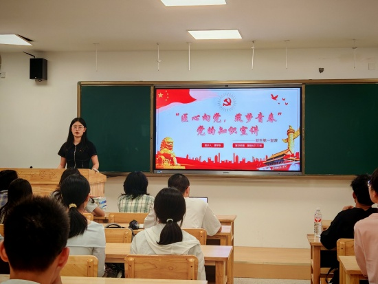 为帮助新生深入了解党的相关知识,筑牢理想信念根基,端正入党动机,基础医学院于9月10日晚在研究生楼开展了2025级新生党的知识宣讲活动。此次活动由学生党支部组织,学生党员分组深入各班级开展宣讲,旨在通过系统的理论讲解与榜样示范,引导新生树立正确的世界观、人生观和价值观,激发他们的爱党爱国热情和向党组织靠拢的积极性。