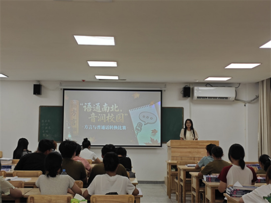 在第28届全国推广普通话宣传周到来之际,为进一步落实国家通用语言文字推广要求,铸牢中华民族共同体意识,帮助新生消除语言隔阂,传承中华语言文化,营造健康和谐的校园语言环境。9月19日,基础医学院在研究生楼121教室组织开展“语通南北,音润校园”方言与普通话转换比赛。