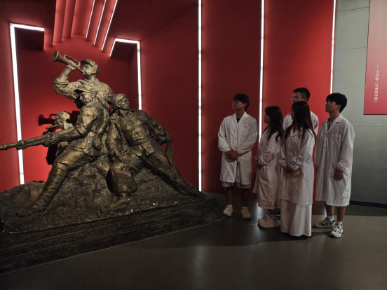 为让同学们不再停留于对抗战历史文献的文字认知,而是通过沉浸式角色演绎与场景再现,直观感受革命先辈在烽火岁月中的无畏抗争与坚定信仰,深刻理解抗战精神在民族危亡之际的磅礴力量与时代价值,基础医学院组织“医心向党”九医红色学习小组学生利用暑假时间,通过实地参观学习红色革命教育基地,积极开展“赓续抗战精神,践行时代使命” 暑期红色走读活动。