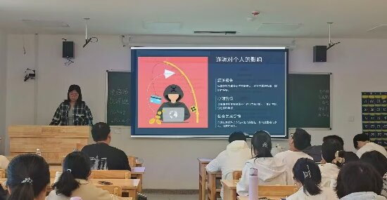 班会以案例讲解、知识科普、互动讨论为核心形式,各班运用真实案例,深入剖析了各种高发骗局的作案手法和心理诱导过程,帮助全体学生认清了诈骗的隐蔽性与危害。同时,他们通过解读《反电信网络诈骗法》关键条款,并结合“不轻信、不透露、不沉默”的实用反诈三步法,将法律知识转化为具体行为准则,切实增强了学生在实际生活中识别与应对诈骗的能力。