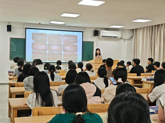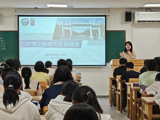 为加强新生专业知识学习教育,帮助2025级新生树立整体医学观念,基础医学院于10月17日晚18:30在研究生楼121教室组织开展了“口腔常见疾病与全身健康”专题讲座,特邀武汉大学口腔医院医生李宇红主讲,2025级预防医学与康复治疗学专业全体新生参加此次讲座。