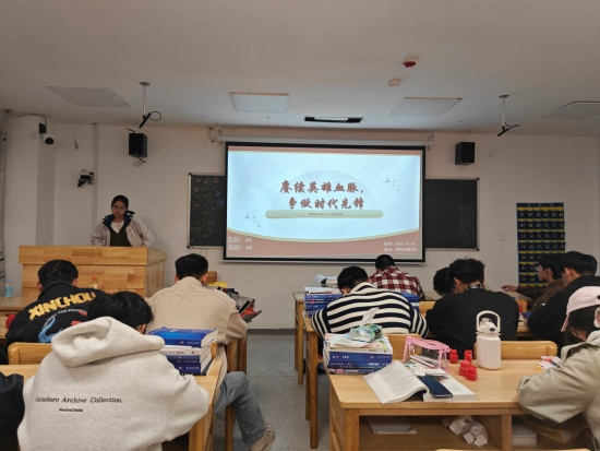 口腔A2412班团支书高恩琪教学楼B504教室内牵头开展抗美援朝精神传承活动,活动分历史回顾、行动计划两部分。历史回顾环节,高恩琪借助历史材料和英雄事迹讲解,鼓励同学们积极回应新时代新征程号召。行动计划环节则明确了传承精神的具体行动方案,为同学们践行红色精神指引方向。