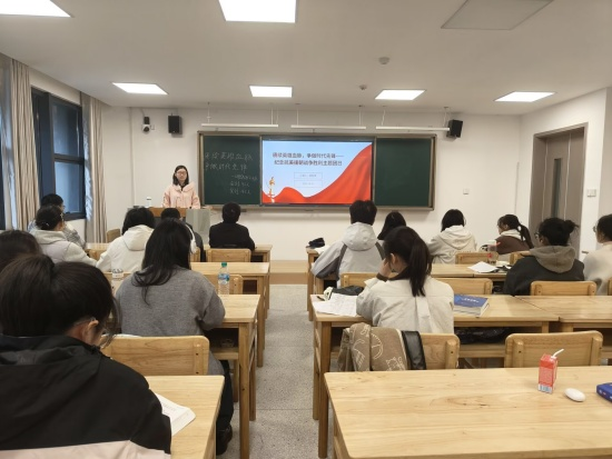 A2341班团支书彭瑾昱在研究生楼330教室带来专题演讲。演讲中,她通过PPT穿插多则先进事迹,让抽象的精神传承变得可感可知,在同学们心中留下深刻印记。这不仅强化了同学们行医为民、坚守初心的使命感,更令他们明晰了救死扶伤与家国责任的联系,为其未来职业道路的发展打下了扎实的的思想基础。