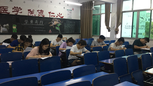 5月27日晚,基础医学院在浔东校区思贤楼506举行2019上半年党员发展对象集中培训结业考试,11名发展对象参加考试,学生党支部书记黄涛监考。