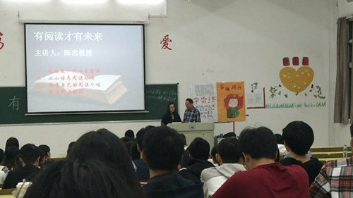 陈忠教授主要从四方面进行讲述。一是阅读是一种人生需求;二是培养自己阅读习惯;三是要有自己的阅读个性;四是警惕阅读缺陷。陈忠教授认为,读书,是精神追求。正如一句古话“读万卷书,行万里路。”读书一定要有一定阅读量。任何时候、任何地方,不丢掉读书习惯,就不会被别人看不起。随后,陈忠教授表示读书可以读得快也可以读得慢,但要有自己的阅读个性,不要盲目跟随别人。要及时改正阅读的缺陷,不然会使我们失去幸福与未来。