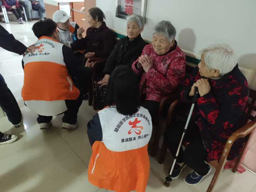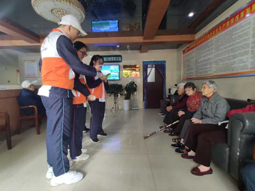 活动当天,大骨班班长刘璐璐将队伍分成两队,一组前往五里街敬老院,二组则赶赴浔阳区白水湖老年康乐中心探望老人。