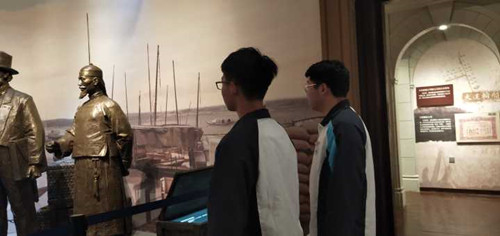 博物馆内陈列着不平等条约、九江人民抗暴斗争、九江金融业的转型等各种历史故事,其中对每件事件都有着详细的记载。走入博物馆仿佛置身于十九世纪的九江,将同学们带回到了那列强侵略、战火纷飞的岁月,让同学们深知如今美好生活的来之不易