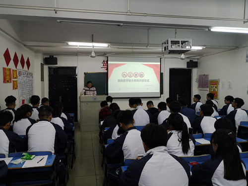 4月8日,基础医学院在华文楼103教室举行青年马克思主义者工程之大学生骨干培训班开班仪式,出席本次开班仪式的有基础医学院党委委员傅文学、全体学员,开班仪式由团委黄涛老师主持。