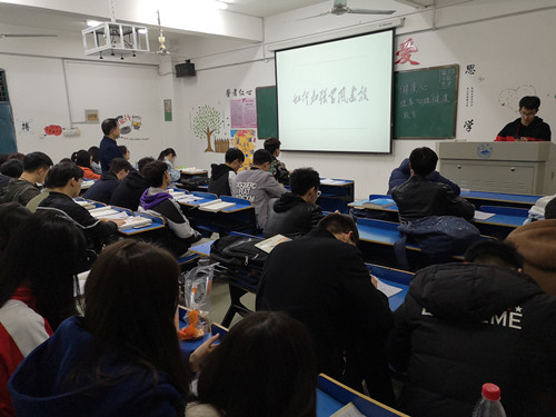 3月17日晚,基础医学院各班于固定教室举行学风建设月动员主题班会,班会由各班班干主持。此次活动的目的是在学生中形成竞争氛围、明确学习目标、建设良好的学习环境。