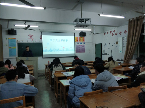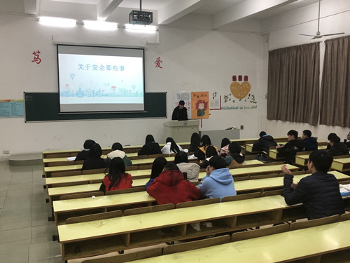 A1714班在本班固定教室思贤楼508以列举案例的方式举行了“安全伴我行”的主题班会。班长苏嵘从网络、校园、消防三个方面讲解了大学生应如何培养安全观,并结合具体的案例生动形象地强调安全的重要性,同时结合自身以及同学的生活提出意见与建议,首先是在校期间的自身的人身财产安全,学校生活中总存在着这样那样的安全隐患,时时刻刻注意是最重要的。为了更好的让同学们理解此次班会的意义,其中有很多案例都在诠释着安全的重要性。