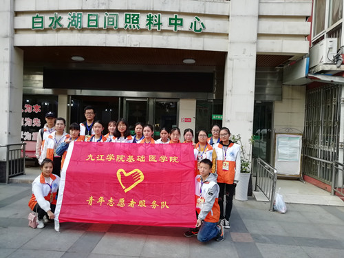 11月3日下午,基础医学院青年志愿者服务队成员来到九江市浔阳区白水湖老年康乐中心开展“入敬老之院、继传统之美”志愿活动,活动由队长张开带队,大一大二志愿者积极参加。