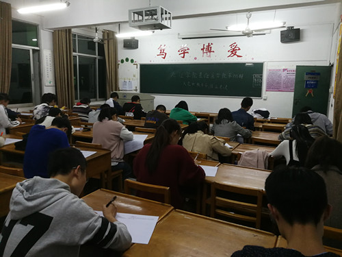 10月31日晚7时,基础医学院浔东校区于思贤楼607进行入党积极分子培训班结业考试。同学们利用在党校培训学习到的有关党章,党纪及其政党知识,认真答题,自觉遵守考试纪律,不因无人监考而做出违规违纪的举动。