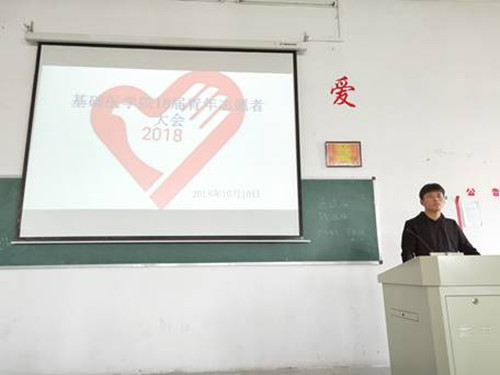 基础医学院青年志愿者服务队召开第一次动员大会。10月15日中午,基础医学院青年志愿者服务队于华文楼阶二召开第一次动员大会。参与本次大会的成员有青年志愿者服务队骨干及全体服务队新成员。会议由队长张开主持。