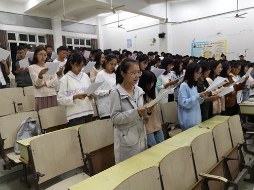 激昂的歌声在教室里回荡,歌颂伟大祖国改革开放40年来的沧桑巨变,展现出新时代青年学生的精气神!
