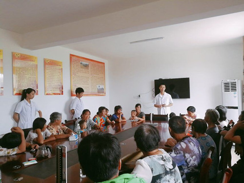 下午两点,爷爷奶奶们如约到达讲座开展地点。主持人刘世鸿给爷爷奶奶们讲解了高血压的危害以及常见病因,例如遗传、年龄和生活习惯等等。爷爷奶奶们也向我们讲了些她们的生活经历和艰苦的生存条件,让我们了解到了那个年代的生活与困难。然后在村医卢医师的协助下,同学们帮爷爷奶奶们测量了血压,制作了健康档案,并告知老人家日常生活中需要注意的一些健康事项。最后,同学们赠送给爷爷奶奶们花露水、蚊香、清凉油、十滴水等夏日防蚊防中暑用品。