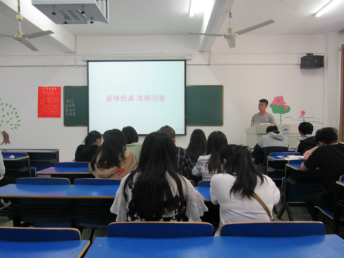 一是开展“品味经典,沐浴书香”团日活动。5月19日上午,各班开展了以“品味经典,沐浴书香”为主题的团日活动。主持人为同学们讲述何为“经典”,就是指那些先辈们呕心沥血所留下的一篇篇文章,他们在文章里面展现出自己思想、抱负以及表现出当代的文化背景。随后大家共同品鉴了《老人与海》、《桃花源记》、《人性的弱点》等经典之作。