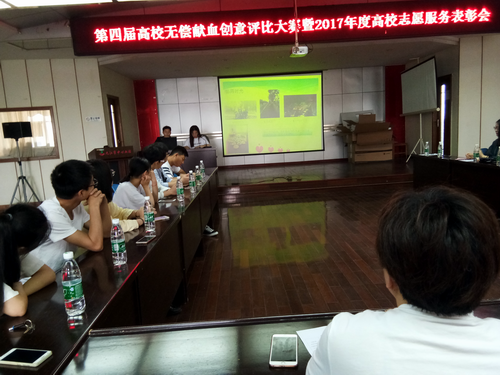 三是参加九江市中心血站举办的第四届高校无偿献血创意评比大赛。5月20日上午,基础医学院青年志愿者服务队代表参加九江市中心血站举办的第四届高校无偿献血创意评比大赛。参加此次大赛的为九江及共青城九大高校代表,中心血站的三民代表主任应邀担任评委。