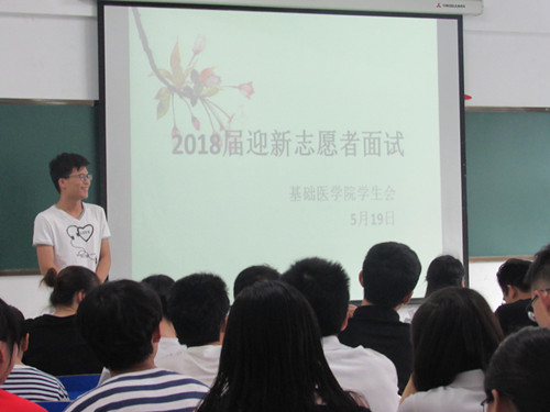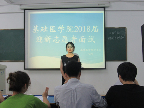 5月19日下午,基础医学院举行2018-2019学年迎新工作者面试会。学生会主席团、各部门部长及各班同学参与此次面试活动。