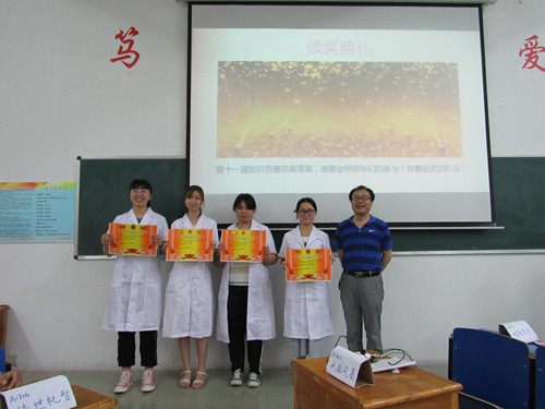 历经初赛和半决赛的比拼,共有A1714、A1721、A1741、A17714支队伍进入决赛。比赛分为非我莫属、争分夺秒、争夺九宫格、噼里啪啦、各抒己见和最终PK 6个环节。竞赛题目紧扣专业知识,让同学们对医学知识有了更深的掌握。比赛中,每个环节的角逐紧张不失活泼,在最精彩的各抒己见环节,参赛队伍通过播放的视频讲述他们对医学的看法和见解。选手们敏捷的思维和娴熟的知识运用在此环节中表现得淋漓尽致,赢得了全场师生观众的啧啧称赞和阵阵掌声。