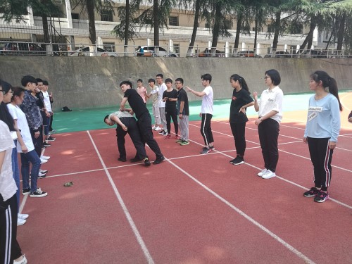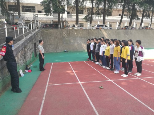活动开始,教官先带领同学们做热身运动,带队绕操场跑操。之后,教官进行了一番简短的讲话,讲解接下来要进行的项目活动。教官将同学们分成两两一组进行跑圈比赛,并阐述了比赛目的:只有当你比敌人强大时才会不畏惧危险。同学们听后都深有感触。接着教官正式教导同学们一些基本防身术,先由两名教官示范一下动作要领,在让同学互相进行练习。活动中,同学们认真学习教官教的防身术,反复练习,互相实践,均取得了不错的效果。最后,经过两名教官的精心教导,同学们学会了许多基本防身术招式。