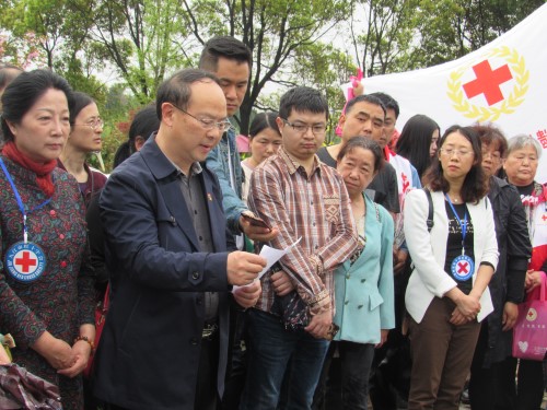 清明将至,为了追忆和祭奠为九江医学事业做出贡献的遗体捐献者,4月2日上午,基础医学院与九江市红十字会联合组织了清明祭奠活动。市红十字会常务副会长王娟等相关领导、遗体捐献者家属、遗体捐献志愿者、红十字会志愿者、基础医学院师生代表及媒体记者等百余人来到贺嘉山遗体捐献纪念碑前,共同祭奠和追思九江市的33位遗体捐献者。