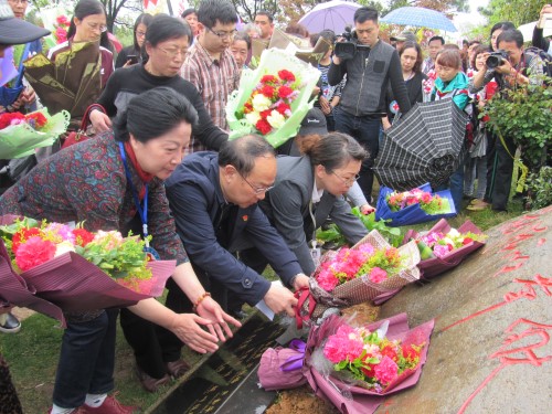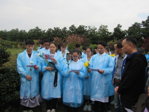 在贺嘉山陵园的一块特殊巨石墓碑上,33位遗体捐献者的名字赫然醒目,周围环绕着鲜花、绿树、青山。九江学院基础医学院院长车向新教授在墓碑前深切致辞,表达自己对这些无私奉献的遗体捐献者的哀悼和崇高敬意。然后,同学们齐声朗诵了缅怀词,对遗体捐献者三鞠躬,大家献上鲜花后低头为遗体捐献者默哀,共同缅怀为医学科研教育事业做出巨大贡献的志愿捐献遗体者,表达哀思,并向他们致以崇高的敬意!