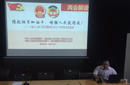 赵文博士紧密结合实际,紧紧围绕全国“两会”精神,从“两会”之特点、“两会”之数读、“两会”之精神等三个方面对2017年全国“两会”精神进行了生动阐释与全面解读。讲座中,他用数据说话,摆事实,讲趋势,报告主题鲜明、内容详尽,深入浅出,精彩的报告赢得了大家的热烈掌声。