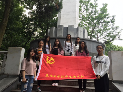 5月7日上午,基础医学院学生模拟党支部成员前往九江市浔阳区革命烈士纪念碑开展纪念活动。活动中,各位模拟党支部书记和入党积极分子首先集中了解了当年革命烈士的英勇行为和无私的奉献精神,学习了当年虽条件艰苦,革命英雄依然坚持奋斗的艰辛历史。随后,大家前往蔡公时烈士纪念碑进行瞻仰悼念,了解了当年蔡公时先生在民族危亡之际奋起反抗英勇就义的事实,让各位预备党员和入党积极分子更加深刻体会到作为炎黄子孙的使命和责任,为在之后的学习生活中更好地履行义务树立了榜样。