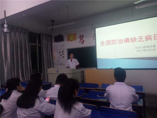 5月7日,基础医学院各班在固定教室召开了有关“全国碘缺乏病防治日”班会,班会由团支书主持,各班全体同学参加。