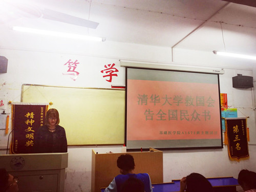为更好地了解和领会抗日青年的爱国主义精神和情感,增强学习动力和责任感,5月4日,在班团支部的组织下,口腔A1672班于思贤楼508开展共读《清华大学救国会告全国民众书》五四青年节主题团日活动。