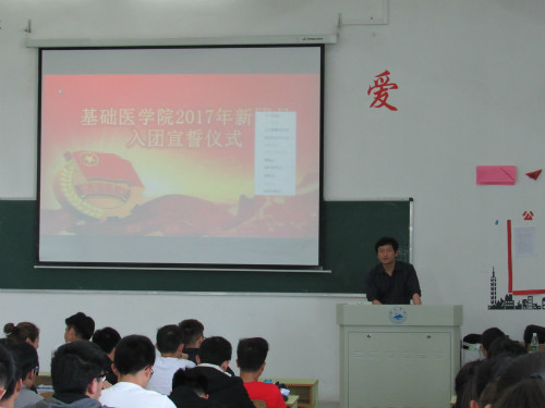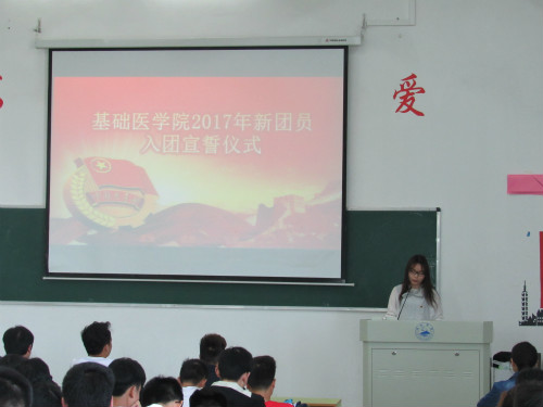 为增强新团员的身份意识和组织认同感,基础医学院于5月2日中午在华阶二举行2017年新团员入团宣誓仪式。团委副书记姚中平、学生会主席团成员、各班团支书、班长、组织、宣传委员及全体新团员参加此次仪式。