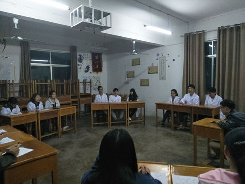 预赛分为简单的三个环节:选择题、抢答题和简答题,每个教室有三支代表队进行精彩的角逐。其中拉开比分的主要环节就是抢答题,在主持人说开始抢答的时候,下面的参赛人员会迅速拨打主持人手机号码然后开始回答问题,答对加分,打错则扣分。这个环节主要考验了同学们对知识的熟悉度和思维的敏捷能力。要说最为困难的就是简答题,简答题分多要点,多得分,具体的题目考验得比较全面,还要求同学们对一些医学知识的整理和归类,从而拿到高分拉开比分。