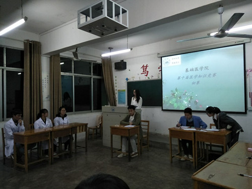 为了扩展医学知识,提升对医学专业的学习兴趣,近日,基础医学院在思贤楼6楼的五个教室举办了第十届医学知识竞赛初赛,本次比赛由基础医学院学生会学习部主办,其中大一的十五个班级来角逐6个晋级名额,基础医学院学生会各部长担任评委。