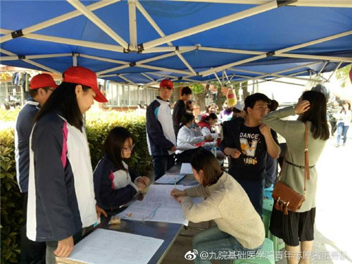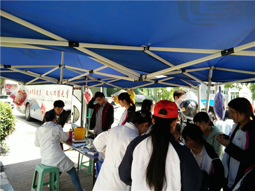 为了储备更多的血液去帮助需要血液的病人,4月13日至4月14日,基础医学院青年志愿者服务队与九江市中心血站的工作人员共同在欧风园组织学生进行无偿献血活动。