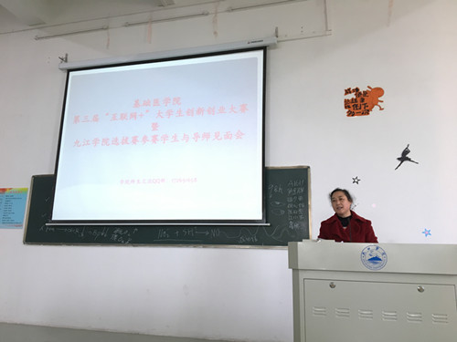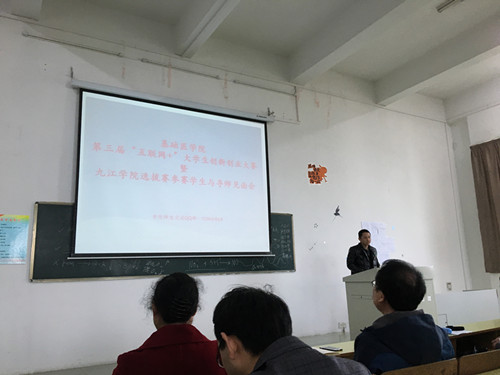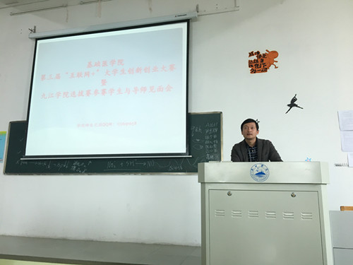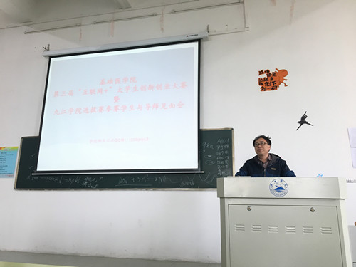 首先,大家观摩了信息学院优秀创业项目路演;基础医学院副院长郑美蓉解读了“互联网+”创新创业大赛的相关内容和要求;副院长汪鑫跟大家分享了创新创业大赛的经验收获以及相关的注意事项;教务科副科长龚勇宣读了导师和学生班级对接名单;随后,基础医学院团委副书记姚中平老师介绍了基础医学院“互联网+”创新创业大赛的工作安排。