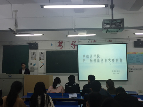 为加强同学们的创新创业意识,4月9日下午,基础医学院于思贤楼思阶四、思阶五举行第三届创新创业大赛初赛,本次大赛由基础医学院学生会创新创业部主办,全体参赛人员参与此次比赛,学生会部长参于评审。