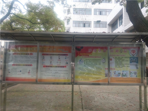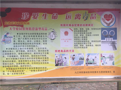 4月8日,基础医学院青年志愿者队前往浔东校区宣传栏进行禁毒防艾知识海报的张贴和宣传。
