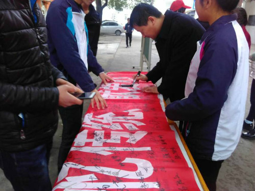 此次活动中,志愿者们先是在食堂门口张贴事先精心准备的海报,然后便拿出横幅呼吁广大师生参与学习雷锋雷锋好榜样的签字活动,其中不乏有老师也参与其中。签字结束后,志愿者们组在一起,一起喊出了志愿者的宣言,喊出了我们学习雷锋的决心和毅力!