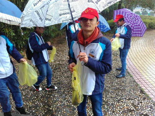 生态环境的保护是当今世界的一大主题。为当地环保作出一份贡献,5号下午,在雷锋日启动仪式结束后,基础医学院的志愿者们便前往南湖公园开展生态环境保护活动。虽然在我们抵达南湖公园不久后便下起了小雨,但是已经准备好面对这天气的志愿者们都选择了撑起我们的雨伞,继续开展活动。在雨中的南湖似乎特意为我们的到来与坚持展现出了平日无法窥见的静谧与魅惑,但是志愿者们只是匆匆一眼便继续埋头寻找破坏这份美好的一切。我们在雨中先是借助木棍挑出附着在绿化带中的顽固的塑料袋等垃圾,然后再把人行道中的垃圾用垃圾袋全部分类装好,最后我们还调查记录了公园垃圾分类情况。生态保护活动是我们今年首次开展,这受到了广大志愿者的积响应,同学们也借此机会向市民介绍了保护生态的重要性。