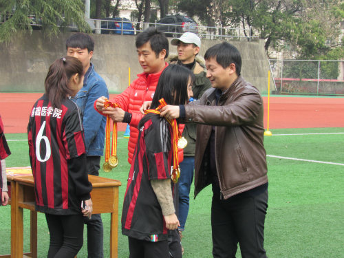 前三甲产生后,在球场上举行了颁奖仪式,浔东学生科、团工委副书记汪兆年老师,基础医学院团委负责人姚中平老师为获胜球员们颁发奖牌和奖状,并与队员合影留念。