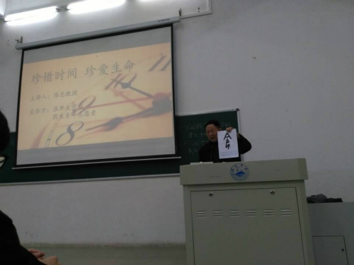 讲座中,陈忠教授围绕“珍惜时间,珍爱生命”这一主题从五个方面进行讲解:一、人的生命是在生物的进化中形成的;二、人的生命是一个从生到死的时空过程;三、人是一个有血有肉有情有义的生命个体;四、人的生命,既在乎长短,更在乎精彩;五、加强时间教育,呼吁生命意识。陈忠教授结合自己丰富的人生阅历,给学生讲解了要如何“珍惜时间,珍爱生命”,并通过一些故事强调了时间就是生命。